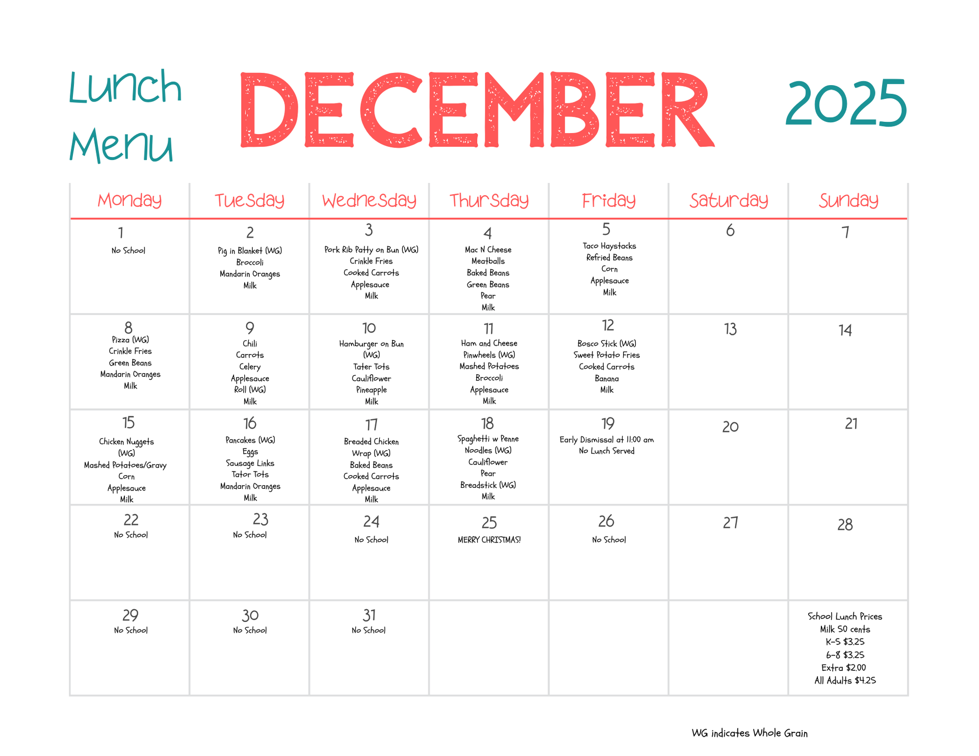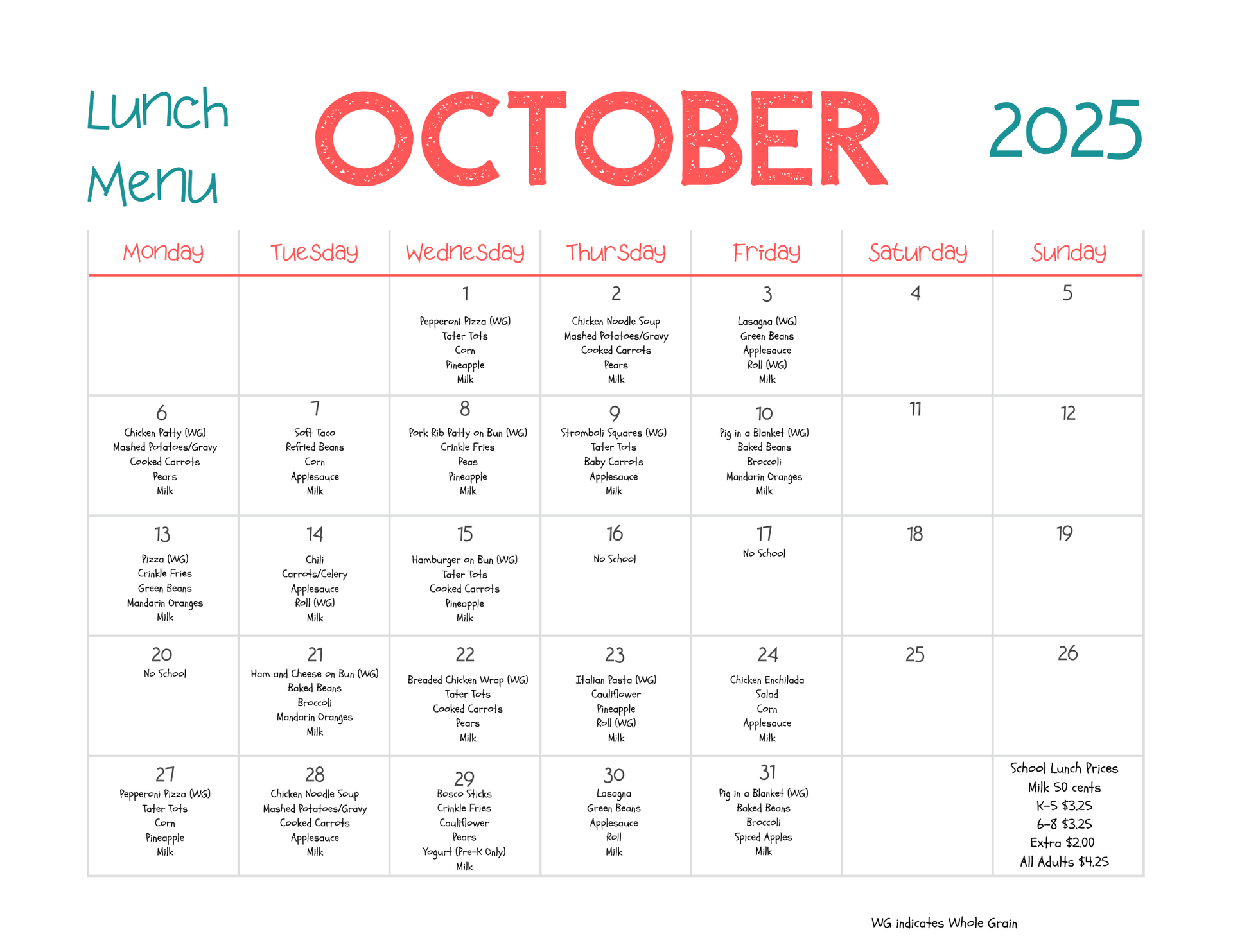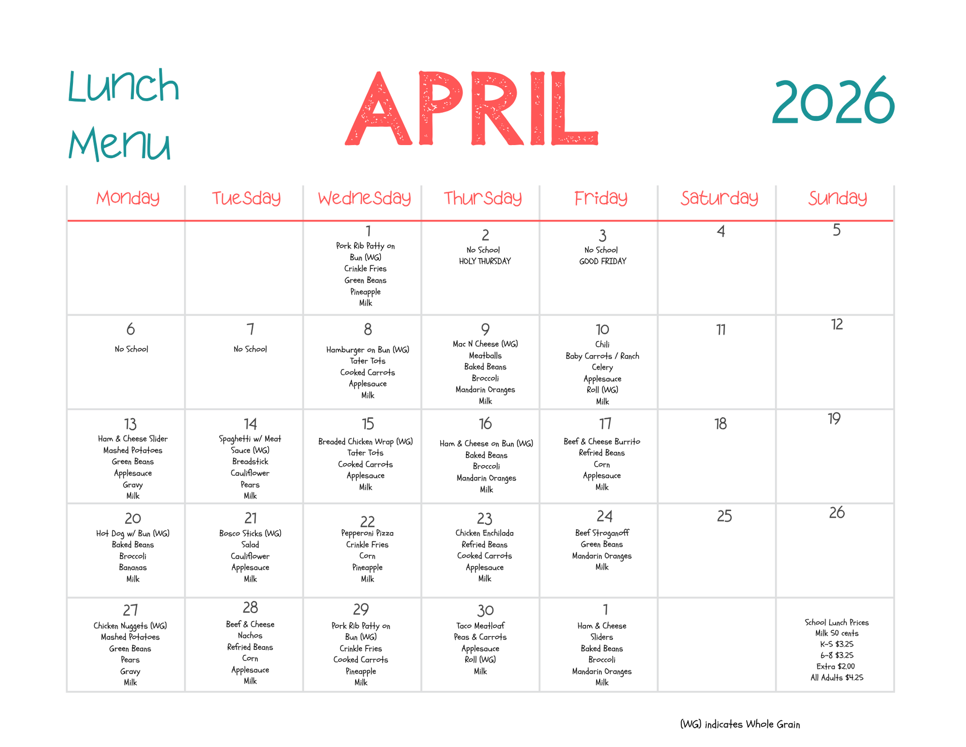Monday - Friday: